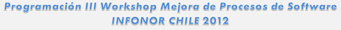 En su tercera versión (2012), el workshop es organizado por el Consorcio de Universidades del Norte de Chile. En él se presentarán trabajos realizados a nivel de Latinoamérica, por investigadores y profesionales participantes en distintas iniciativas de mejora de procesos en ámbitos del proceso de software.